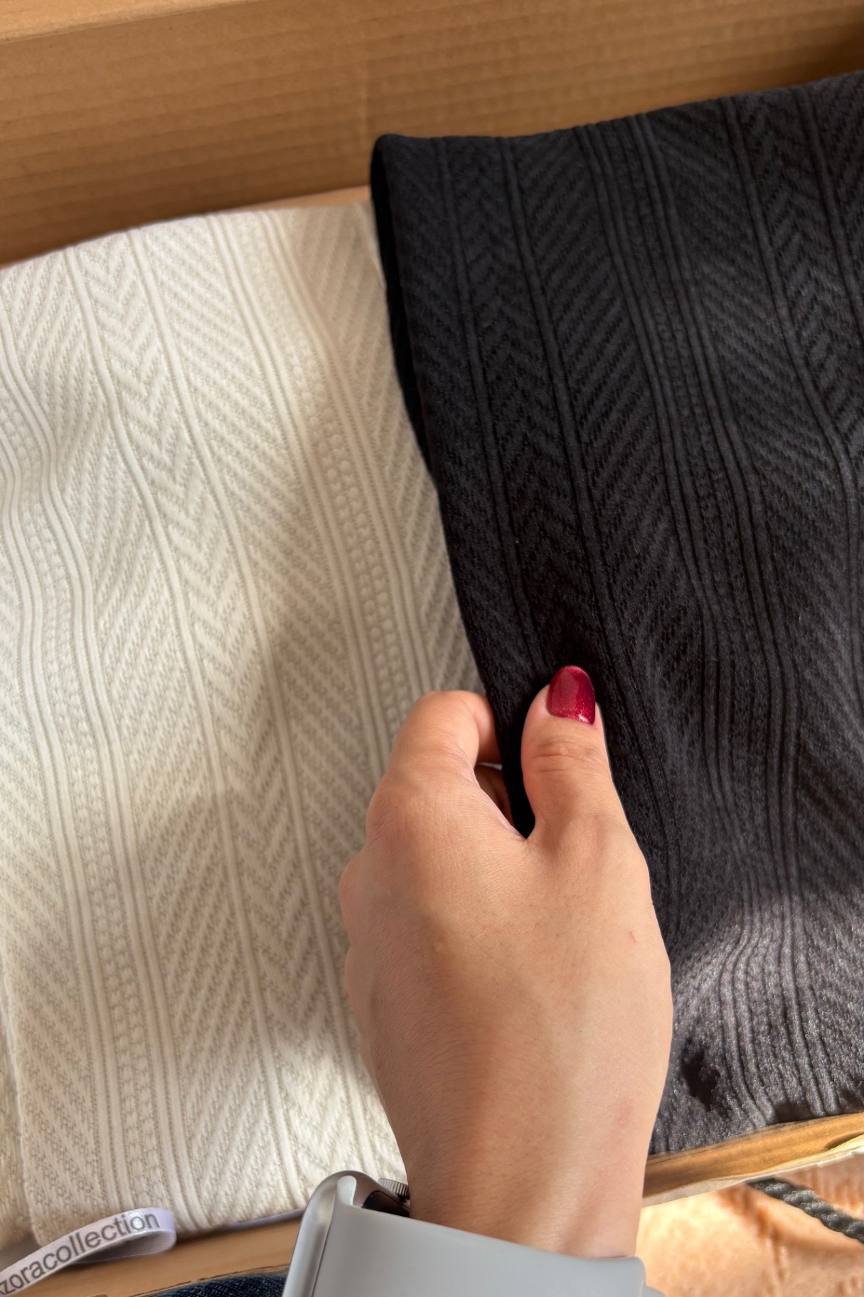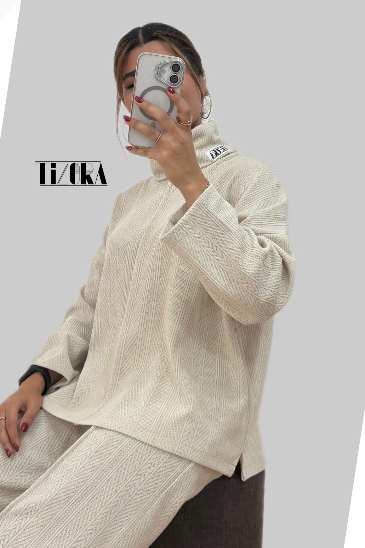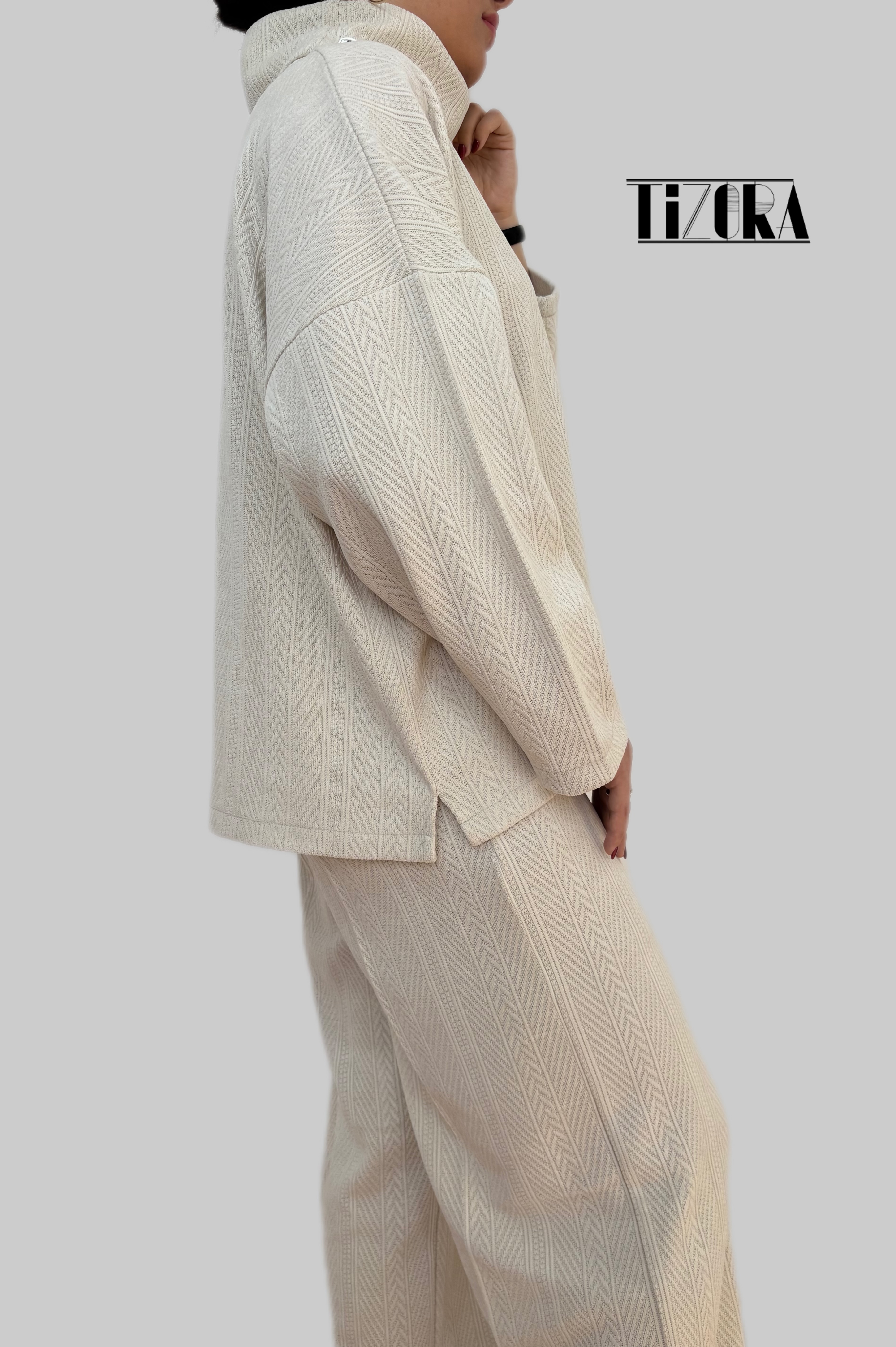 ست بافت زنانه تیزورا، ترکیبی از طراحی مینیمال و دوخت دقیق حرفهایه.
