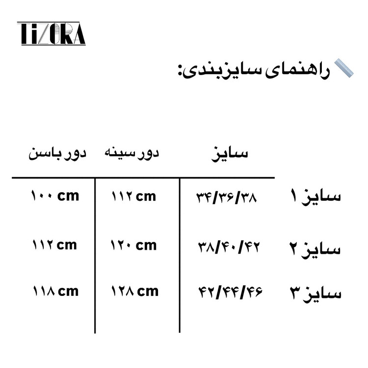 🔸دارای سه تا سایز طبق جدول راهنمای سایز داخل تصویر