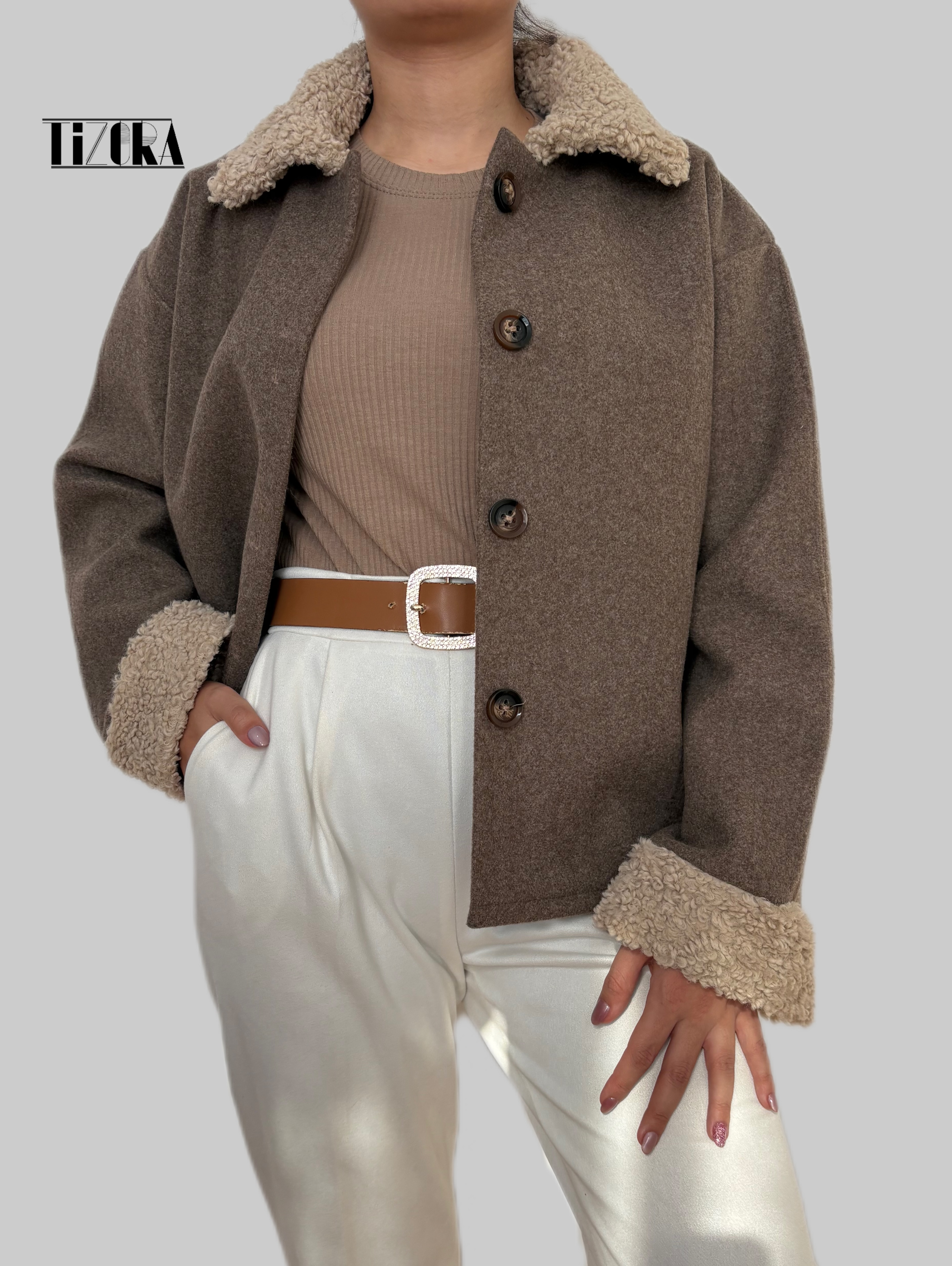 کت فوتر قهوهای با خز لطیف، ترکیبی از گرما، لطافت و استایل مینیمال زمستونی.🥰🤍